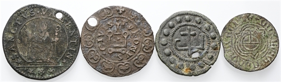 XIV-XV secolo. Lotto composto da 1 medaglia della scuola di San Valentino di Venezia e tre tessere.