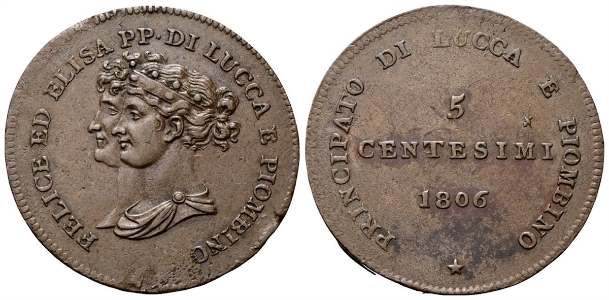 Felice e Elisa Baciocchi, 1805-1814. 5 Centesimi 1806.