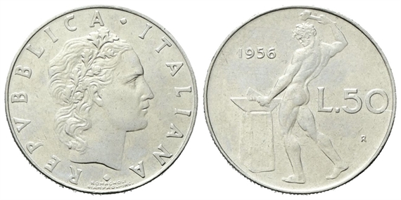 Repubblica Italiana, dal 1946. 50 Lire 1956 Vulcano.
