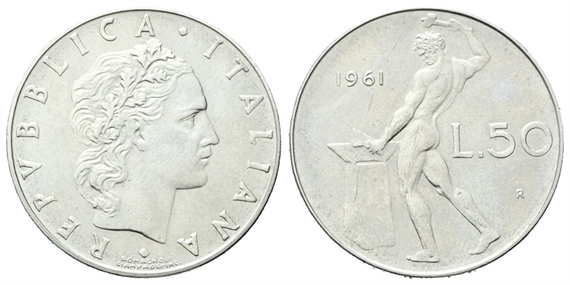 Repubblica Italiana, dal 1946. 50 Lire 1961 Vulcano.