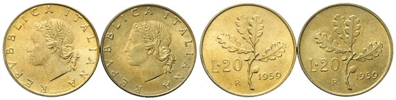 Repubblica Italiana, dal 1946. Lotto di 2 esemplari 20 Lire 1959.
