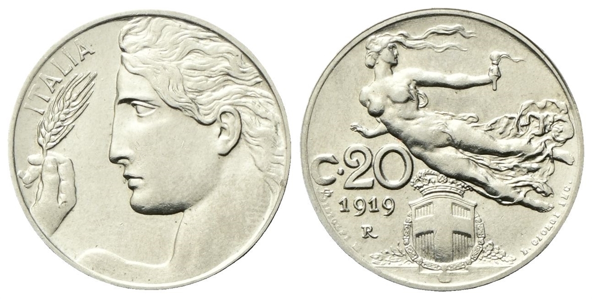 Vittorio Emanuele III, 1900-1943. 20 Centesimi 1919 Roma, Libertà Librata.