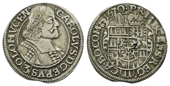 Karl II von Liechtenstein, 1664-1695. 3 Kreuzer 1670.