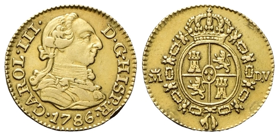 Carlo III di Borbone, Re di Spagna 1759-1788. 1/2 Escudos 1786 DV Madrid.