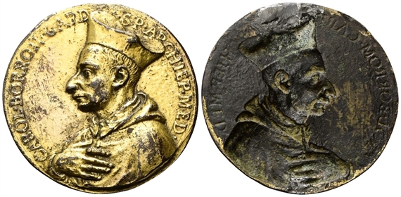 Dr. CAROL BORROM CARD - S P ARCHIEP MED. Busto del Cardinale a s. con cappello cardinalizio e abiti prelati, con la mano d. poggiata al cuore. Rv. Stesso soggetto incuso.