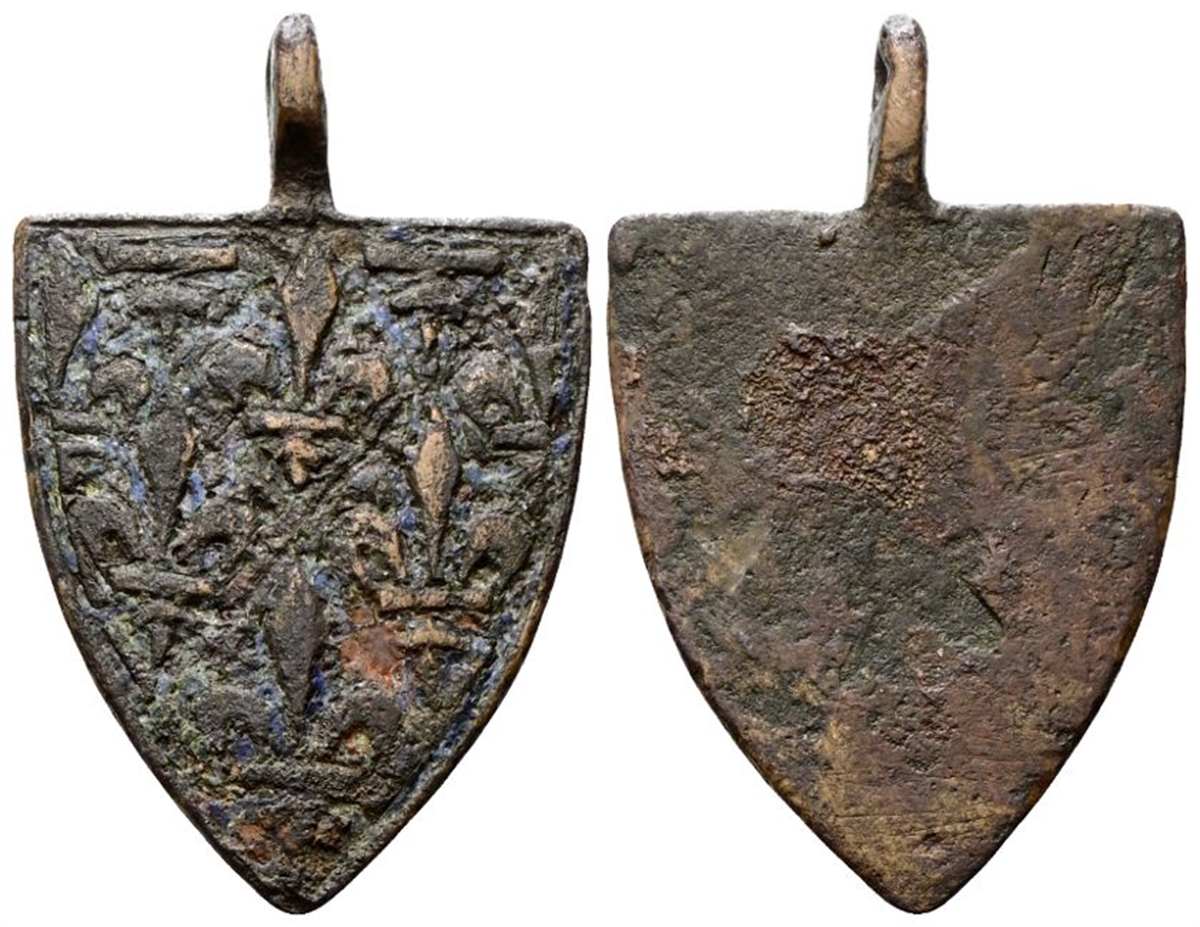 XIV- XV Secolo ? Medaglia ciondolo riproducente lo stemma d’Angiò (Giovanna I d’Angiò e Ludovico di Taranto cfr. denaro).
