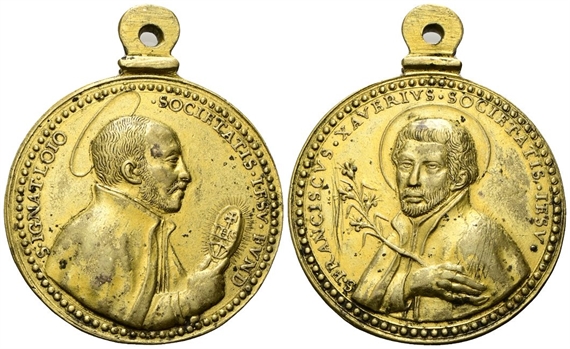 Dr. S IGNAT LOIO - SOCIETATIS IESV FVND. Busto del Santo a d.; davanti, l’Eucarestia raggiante. Rv. S FRANCISVS XAVERIVS SOCIETATIS IESV. Busto del Santo a s.