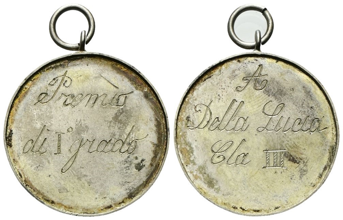 Dr. PREMIO / DI I° GRADO. Iscrizione disposta su due righe. Rv. A / DELLA LUCIA / CLA III. Iscrizione disposta su tre righe.
