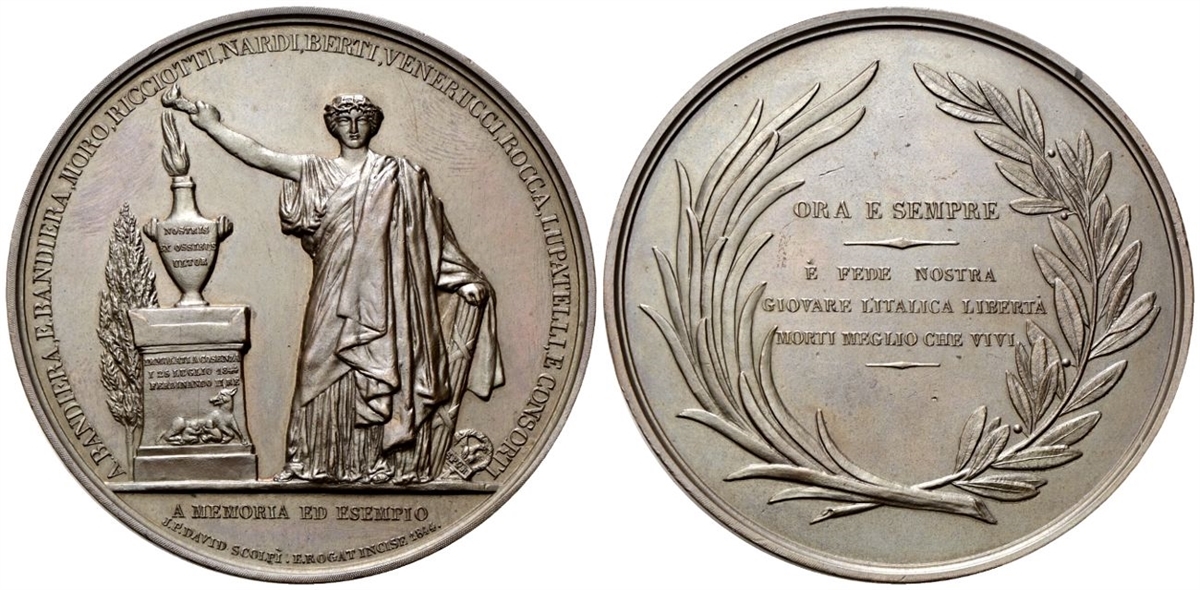 Medaglia 1844 Martirio dei fratelli Bandiera III Tipo opus P. J. D. d’Angers e E. Rogat.