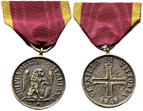 Governo Provvisorio di Venezia, 1848-1849. Medaglia 1848, con appiccagnolo, Liberazione di Venezia - Vessillo di Vittoria I Tipo.