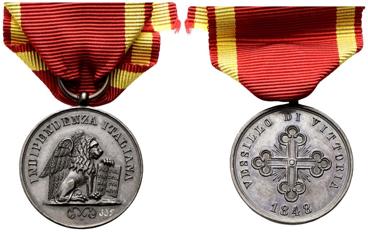Governo Provvisorio di Venezia, 1848-1849. Medaglia 1848, con appiccagnolo, Liberazione di Venezia - Vessillo di VittoriaVI Tipo.