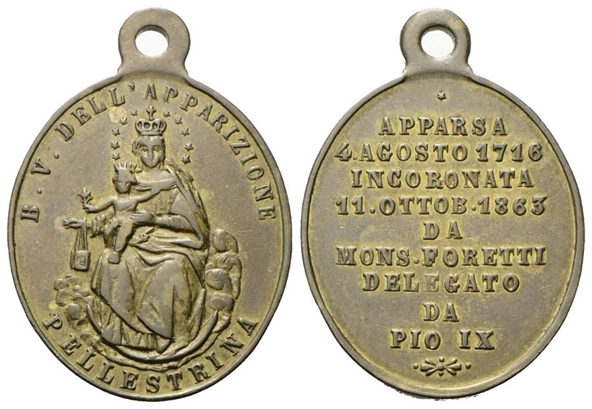 Pio IX (Giovanni Maria Mastai Ferretti), 1846-1878. Medaglia 1863 Incoronazione della B. Vergine dell’Apparizione a Pellestrina.