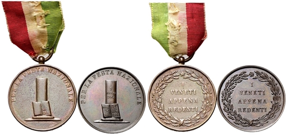GIUGNO / 1867; alla base, un libro aperto con la scritta: STATUTO / D’/ITALIA / 4 / MARZO / 1848. Rv. I / VENETI / APPENA / REDENTI.