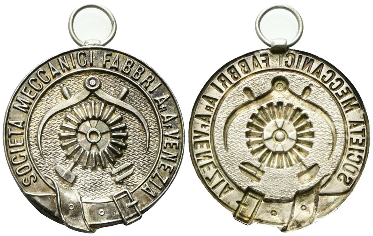 Dr. SOCIETA’ MECCANICI FABBRI AR I AF I VENEZIA. Martello, pinze e ingranaggi. Rv. Stesso soggetto incuso.