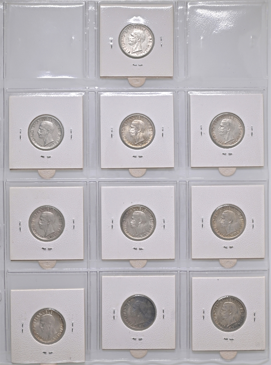 Vittorio Emanuele III. Lotto di n. 10 Aquilini da 5 Lire datate 1927 (9 pezzi) e 1929 (1 pezzo).