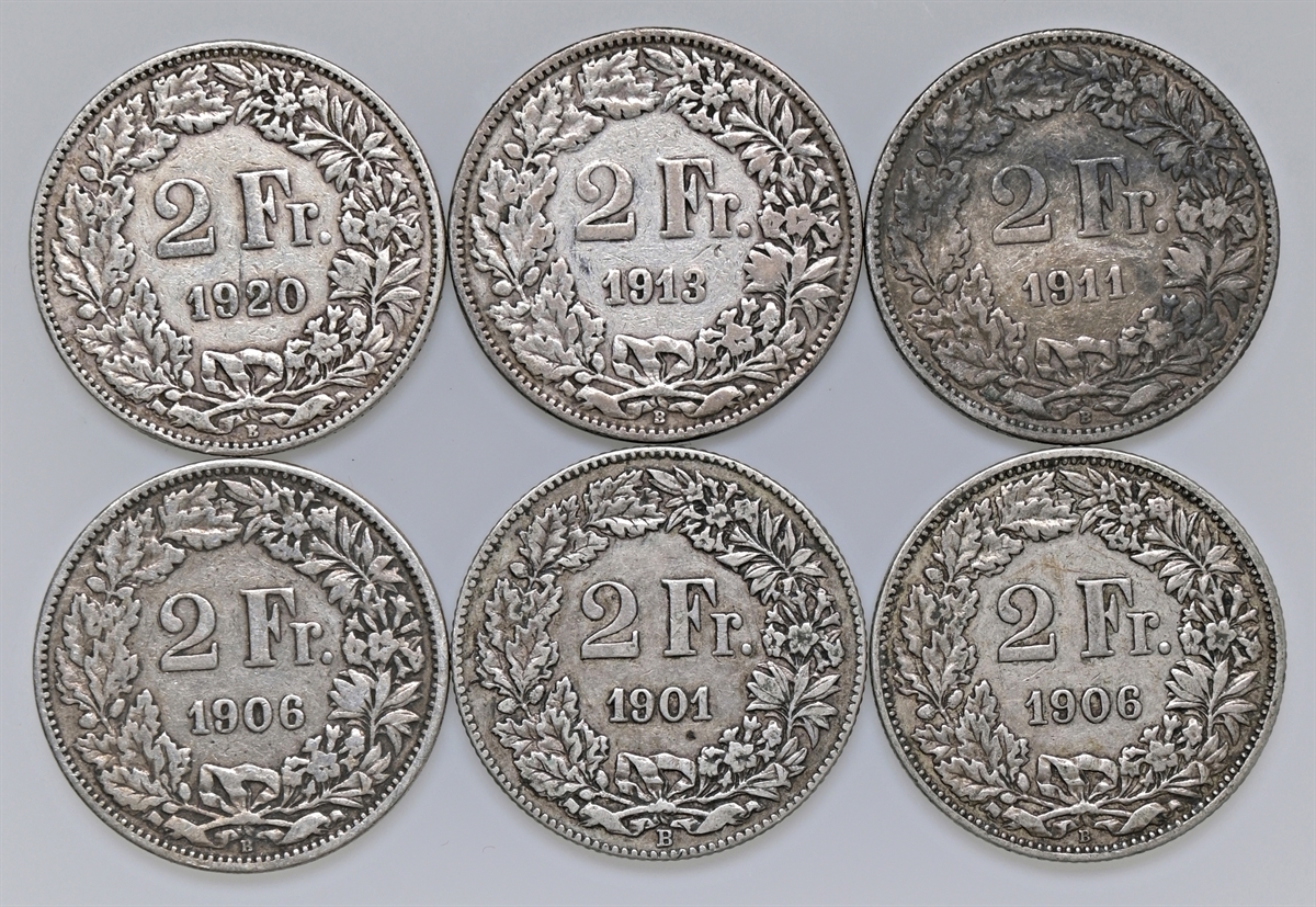 Lotto di n. 6 - 2 franchi svizzeri: si segnala 2 Franchi 1901.