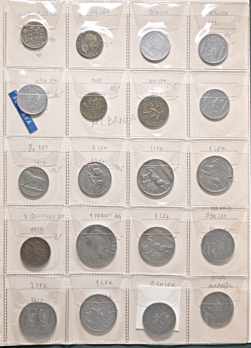 Per l’Abania n. 43 esemplari dallo 0,05 lek al 5 lek in argento e altre monete.