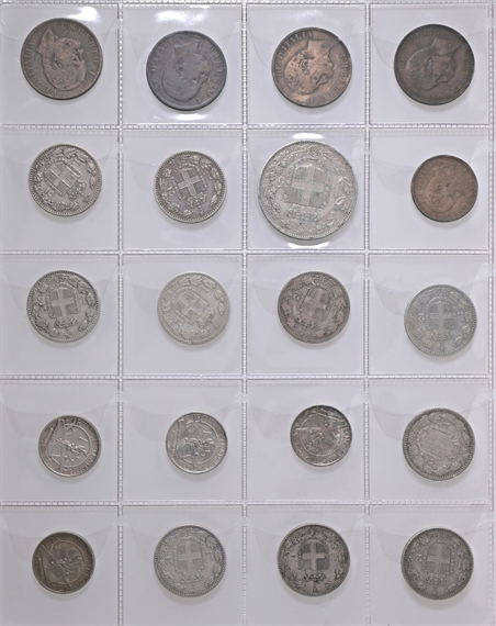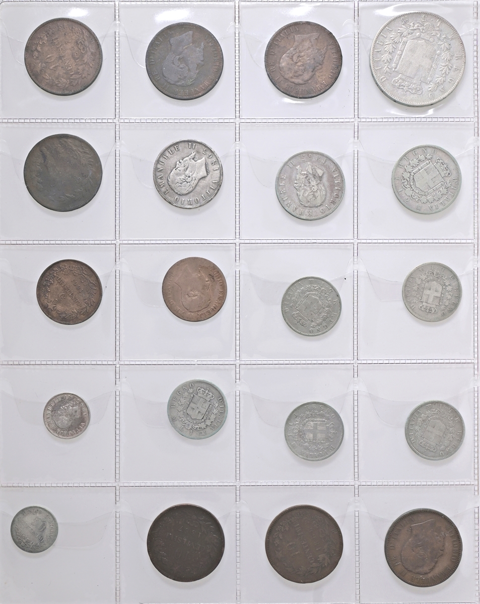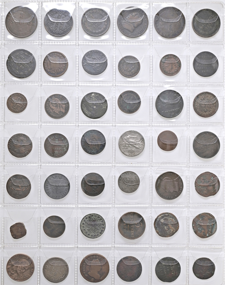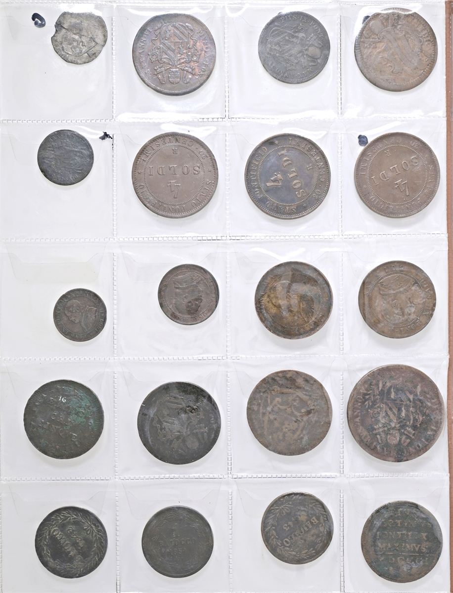 Album con intenti collezionistici con monete di area italiana: si segnalano monete di Bologna, Venezia, Stato Pontificio, Regno d’Italia etc di cui 26 monete in argento.