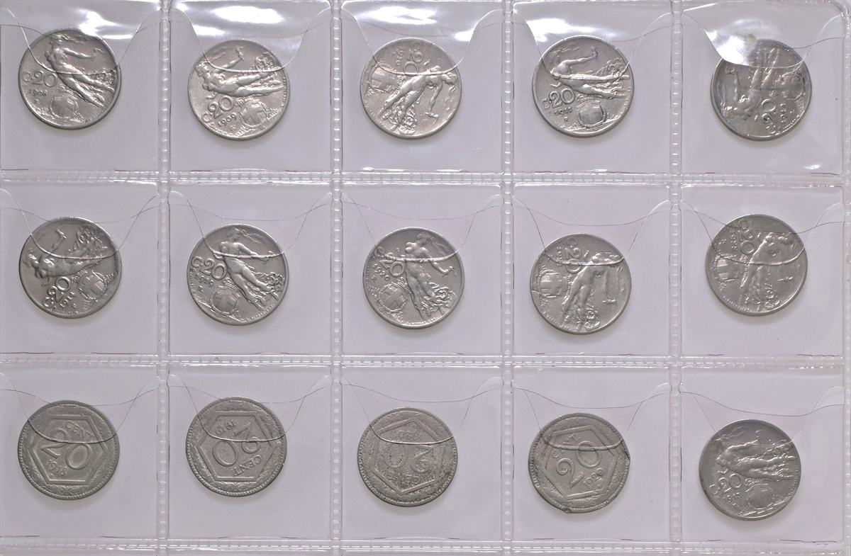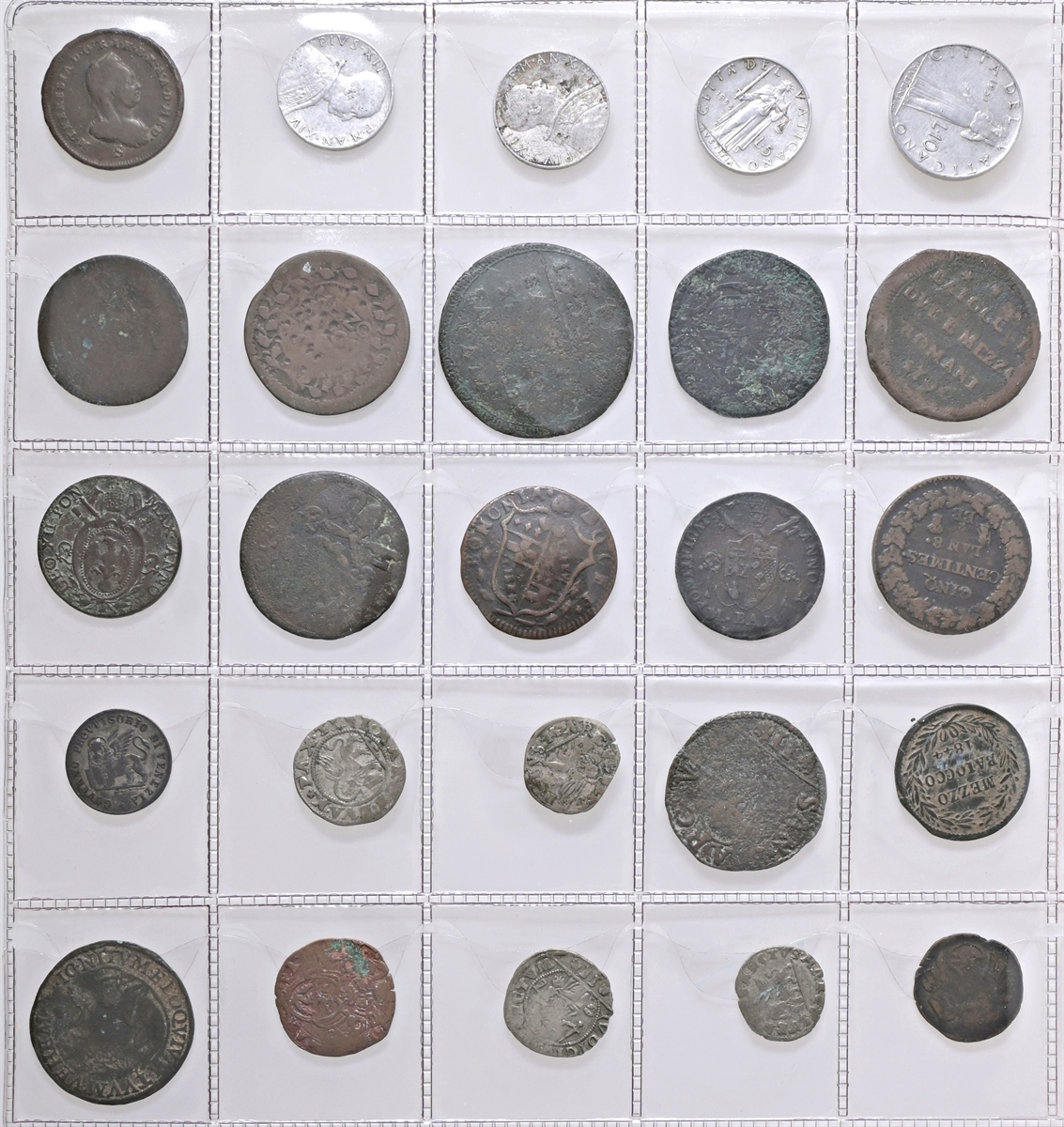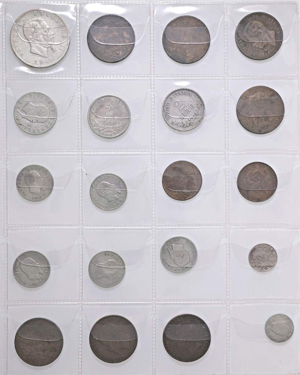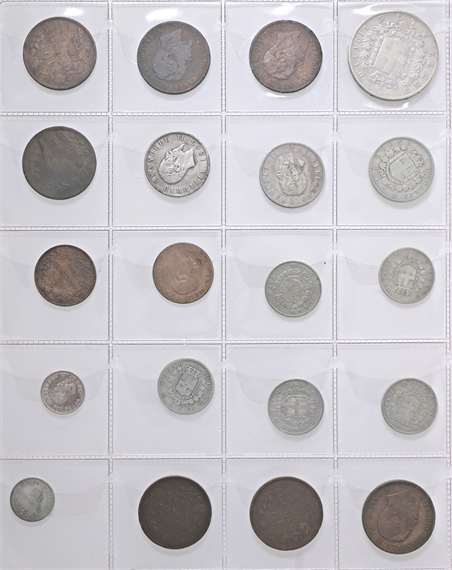 Album con intenti collezionistici con monete di area italiana: si segnalano monete di Bologna, Venezia, Stato Pontificio, Regno d’Italia etc di cui 26 monete in argento.