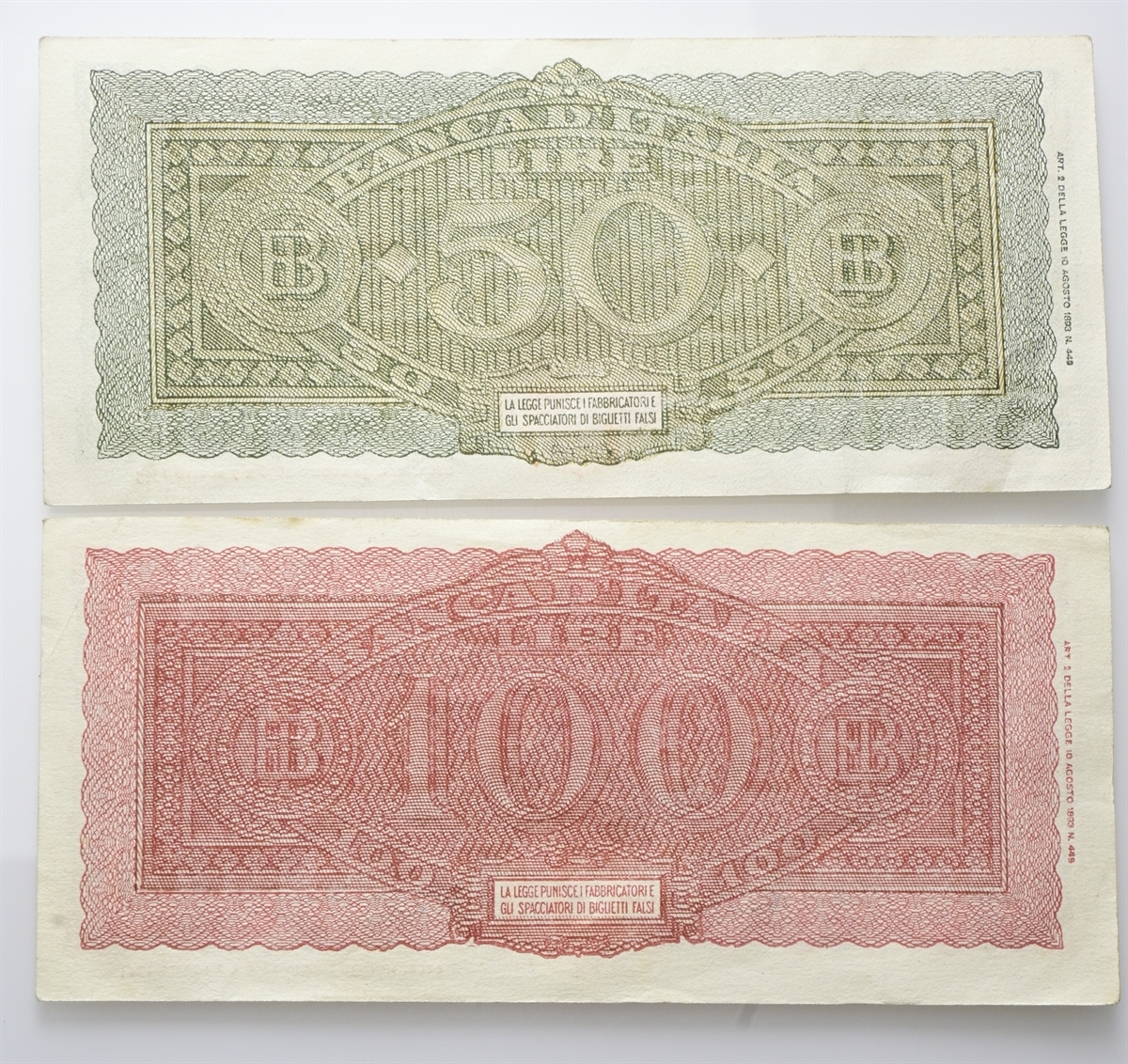 Luogotenenza. Coppia da 50 e 100 Lire Italia Turrita 1944 Banca d’Italia: si segnalano le 100 Lire W.
