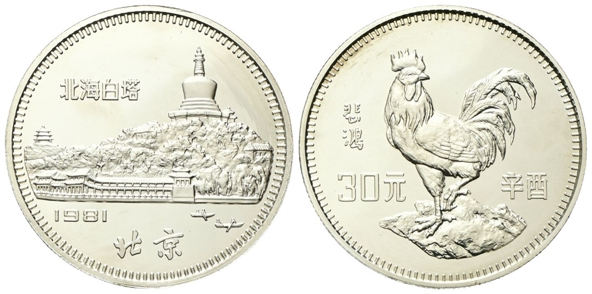 Repubblica Popolare Cinese, dal 1949. 30 Yuan 1981. Caldendario cinese - Anno del Gallo.