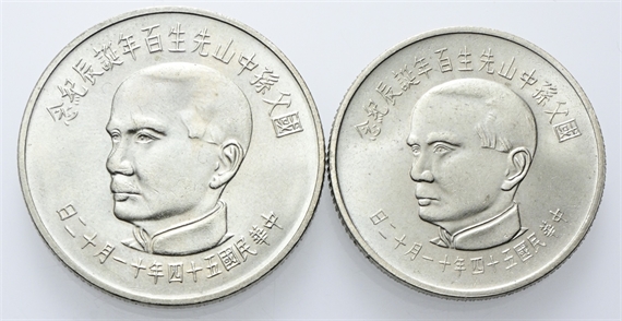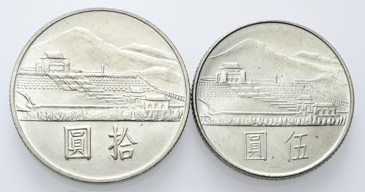Repubblica Popolare Cinese, dal 1949. Taiwan. Set di 10 e 5 Dollari nuovi 1965, Sun Yat-Sen.