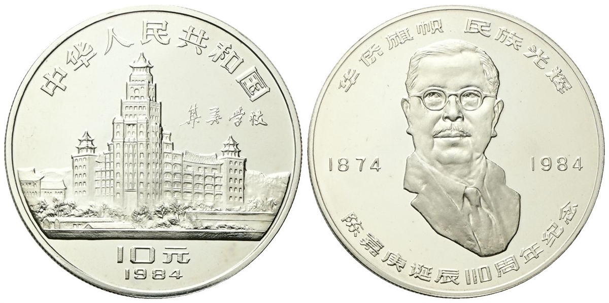 Repubblica Popolare Cinese, dal 1949. 10 Yuan 1984, 110mo anniversario della nascita di Chen Jiageng.