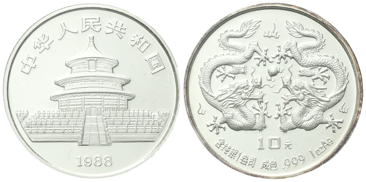 Repubblica Popolare Cinese, dal 1949. 10 Yuan 1988. Calendario cinese - Anno del drago.