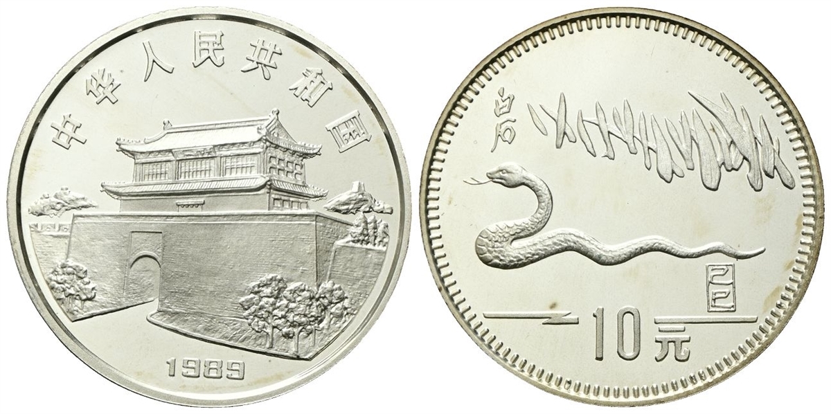 Repubblica Popolare Cinese, dal 1949. 10 Yuan 1989. Calendario cinese - Anno del serpente.