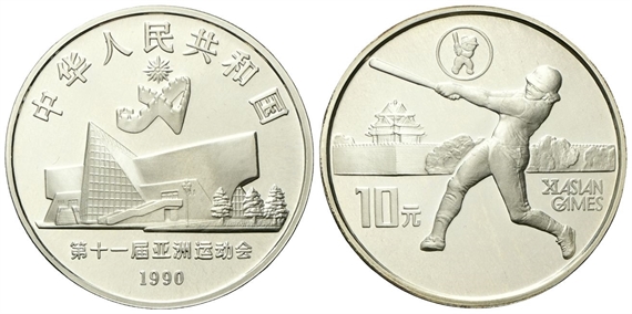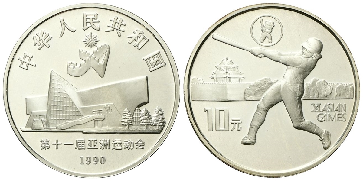 Repubblica Popolare Cinese, dal 1949. 10 Yuan 1990, Giochi asiatici, Pechino 1990 - Giocatore di baseball.