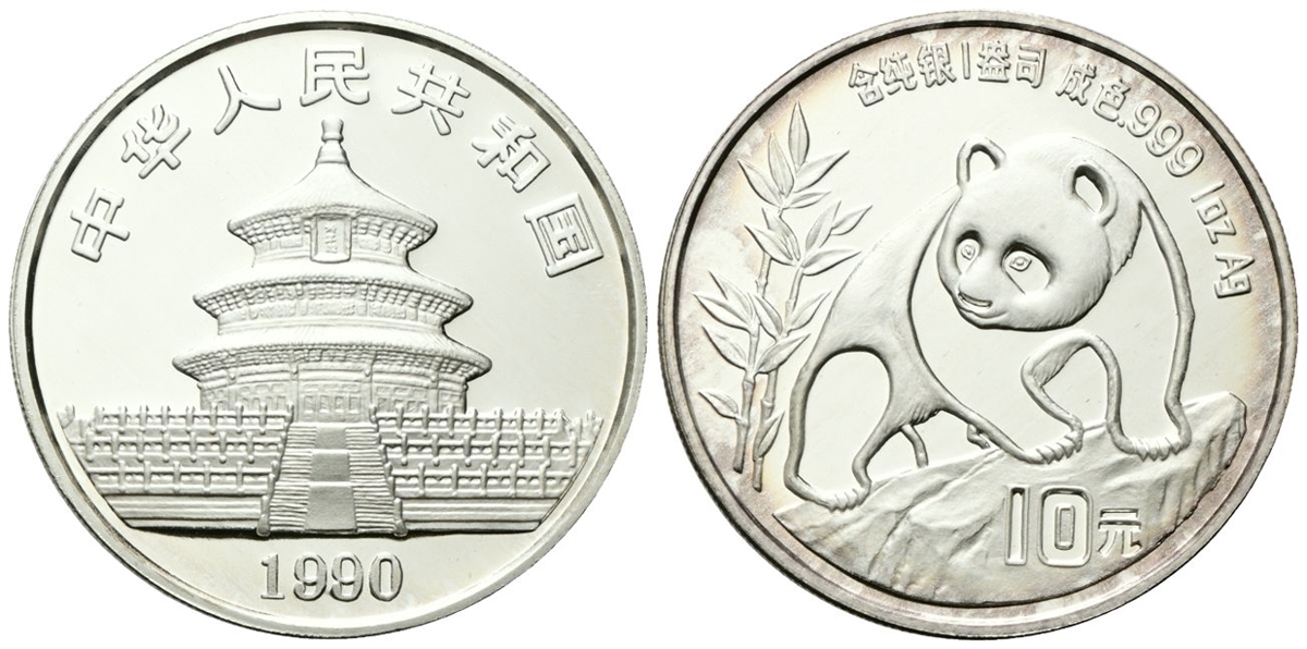 Repubblica Popolare Cinese, dal 1949. 10 Yuan 1990 Panda.
