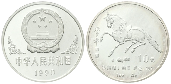 Repubblica Popolare Cinese, dal 1949. 10 Yuan 1990. Calendario cinese - Anno del cavallo.