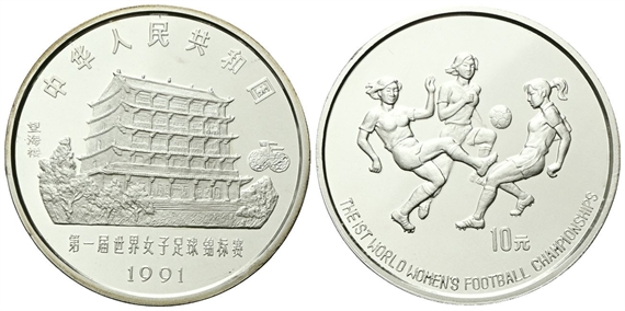 Repubblica Popolare Cinese, dal 1949. 10 Yuan 1991. Coppa del Mondo femminile FIFA