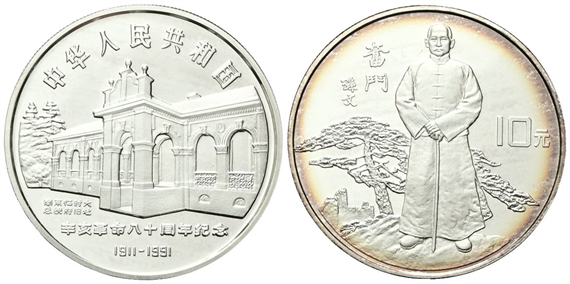 Repubblica Popolare Cinese, dal 1949. 10 Yuan 1911- 1991. 80° Anniversario - Rivoluzione del 1911.