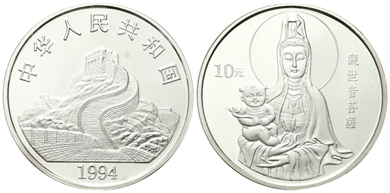 Repubblica Popolare Cinese, dal 1949. 10 Yuan 1994. Dea Kuan Yin.