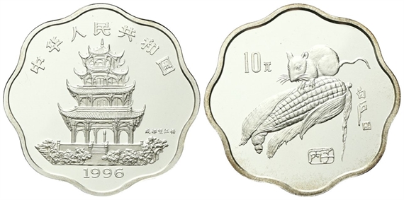 Repubblica Popolare Cinese, dal 1949. 10 Yuan 1996. Calendario cinese - L'anno del topo.