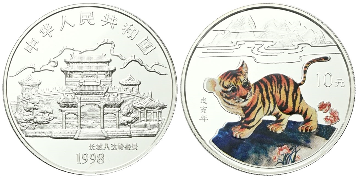 Repubblica Popolare Cinese, dal 1949. 10 Yuan 1998. Calendario cinese. L'anno della tigre.