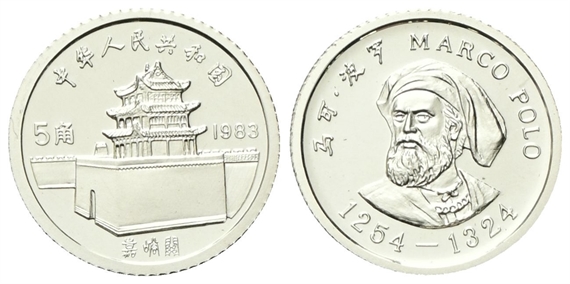 Repubblica Popolare Cinese, dal 1949. 5 Yuan 1983. Marco Polo.