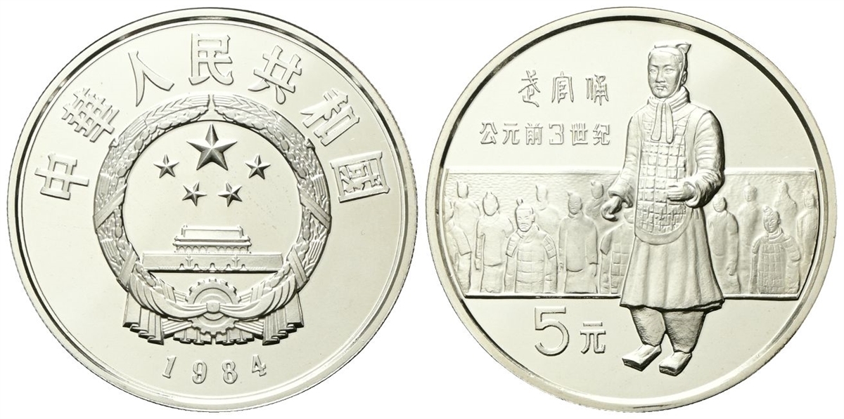 Repubblica Popolare Cinese, dal 1949. 5 Yuan 1984. Personalità cinesi - l'imperatore Qin Shi Huang.