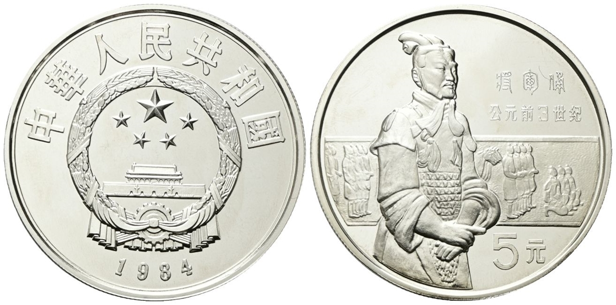 Repubblica Popolare Cinese, dal 1949. 5 Yuan 1984. Esercito di terracotta - Ufficiale.