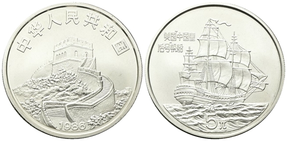 Repubblica Popolare Cinese, dal 1949. 5 Yuan 1986. Veliero americano "Regina della Cina".