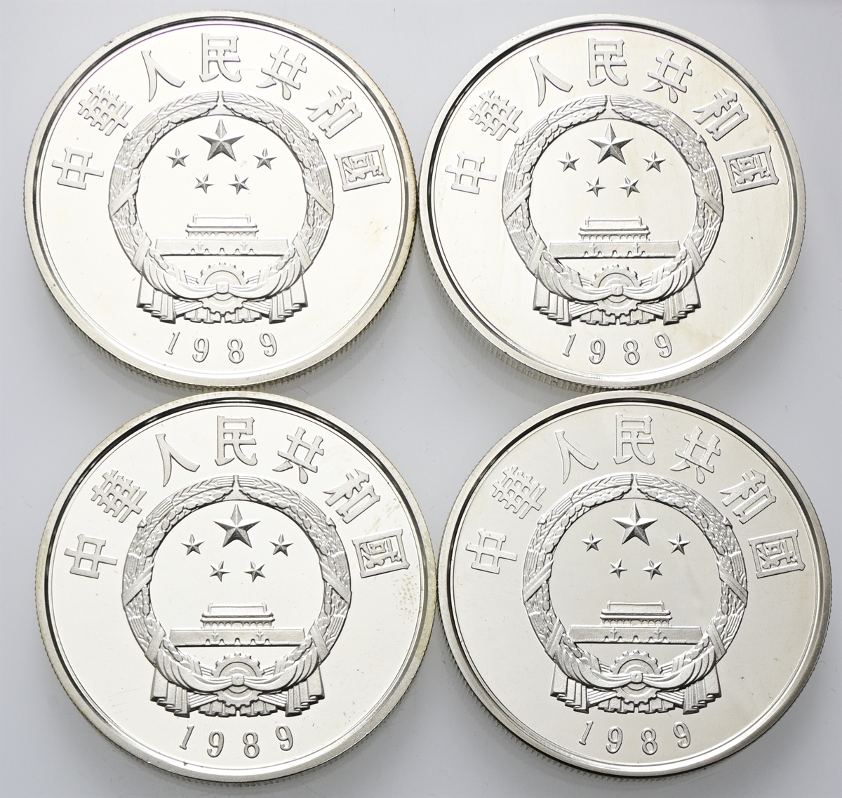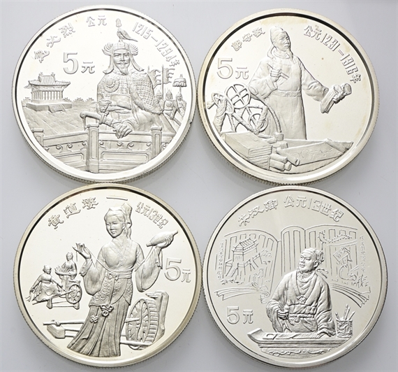 Repubblica Popolare Cinese, dal 1949. 4 esemplari da 5 Yuan 1989, Personalità cinesi - Hu Bi Lie, Guan Hanqing, Guo Shoujing, Huang Dao Po.