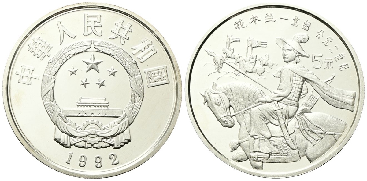 Repubblica Popolare Cinese, dal 1949. 5 Yuan 1992. Personalità cinese - Hua Mulan.