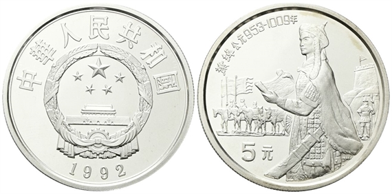 Repubblica Popolare Cinese, dal 1949. 5 Yuan 1992. Personalità cinesi - Xiao Chuo.