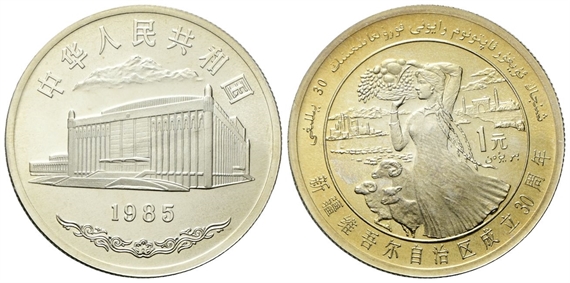 Repubblica Popolare Cinese, dal 1949. 1 Yuan 1985. 30° anniversario - Regione autonoma uigura dello Xinjiang.