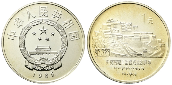 Repubblica Popolare Cinese, dal 1949. 1 Yuan 1985. 20° anniversario - Regione autonoma del Xizang.