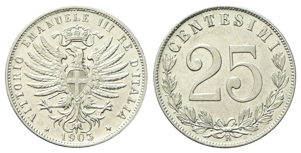 Vittorio Emanuele III, 1900-1943. 25 Centesimi 1903 Roma, Valore.