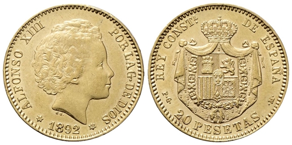 SPAGNA - Alfonso XIII, 1886-1931. - 20 Pesetas 1892.