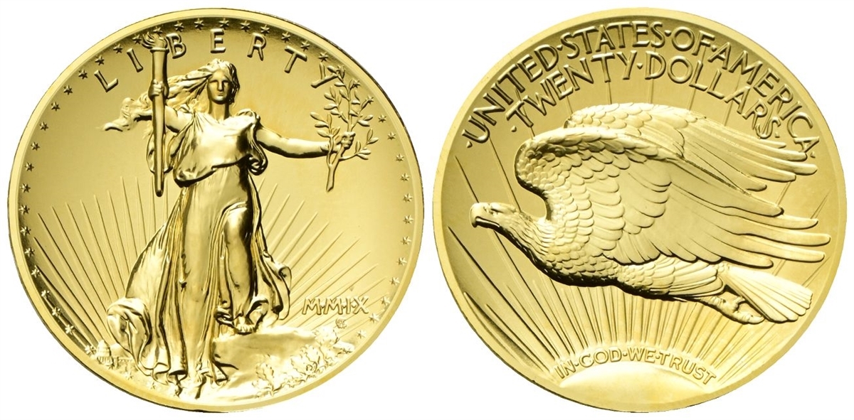 Emessa nel 2009 dalla Zecca degli Stati Uniti per i collezionisti del XXI secolo, questa moneta è una versione modernizzata dell'originale Saint-Gaudens da 20 dollari del 1907 in altorilievo. Coniata in altorilievo ultra-alto con finitura a specchio proof, su un tondello da 27 mm in oro fino 9999 da 1 oncia.