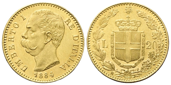 Umberto I, 1878-1900. 20 Lire 1884 Roma.